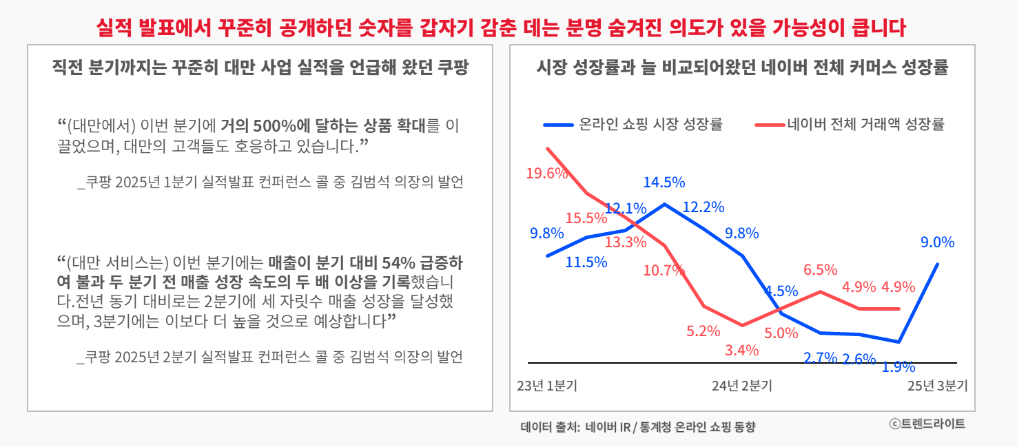 ๊ทธ๋์ ํด์ธ๋ก ๋์ ๋๋ฆฐ ์ ๋ ๊ฐ์ต๋๋ค. ์ฟ ํก์ ๋๋ง์ ๋๊ท๋ชจ ์ถ๊ฐ ํฌ์๋ฅผ ์๊ณ ํ๊ณ , ๋ค์ด๋ฒ๋ ํฌ์๋งํฌยท์๋ผํ์ ์ถ์ผ๋ก ๊ธ๋ก๋ฒ ๋ฆฌ์ ยท์ค๊ณ ์ํ๊ณ์ ํต์ฌ ํ๋ ์ด์ด๊ฐ ๋๋ ค ํฉ๋๋ค. ๋ค๋ง ํ ๋จ๊ณ์์ ์ด๋ค๋ง์ผ๋ก ๊ฐํ ์ฑ์ฅ ์์ฌ๋ฅผ ๋ง๋ค๊ธฐ์ ์ฌ์ ํ ๋ถ์กฑํ ๊ฒ ์ฌ์ค์ด์ฃ .